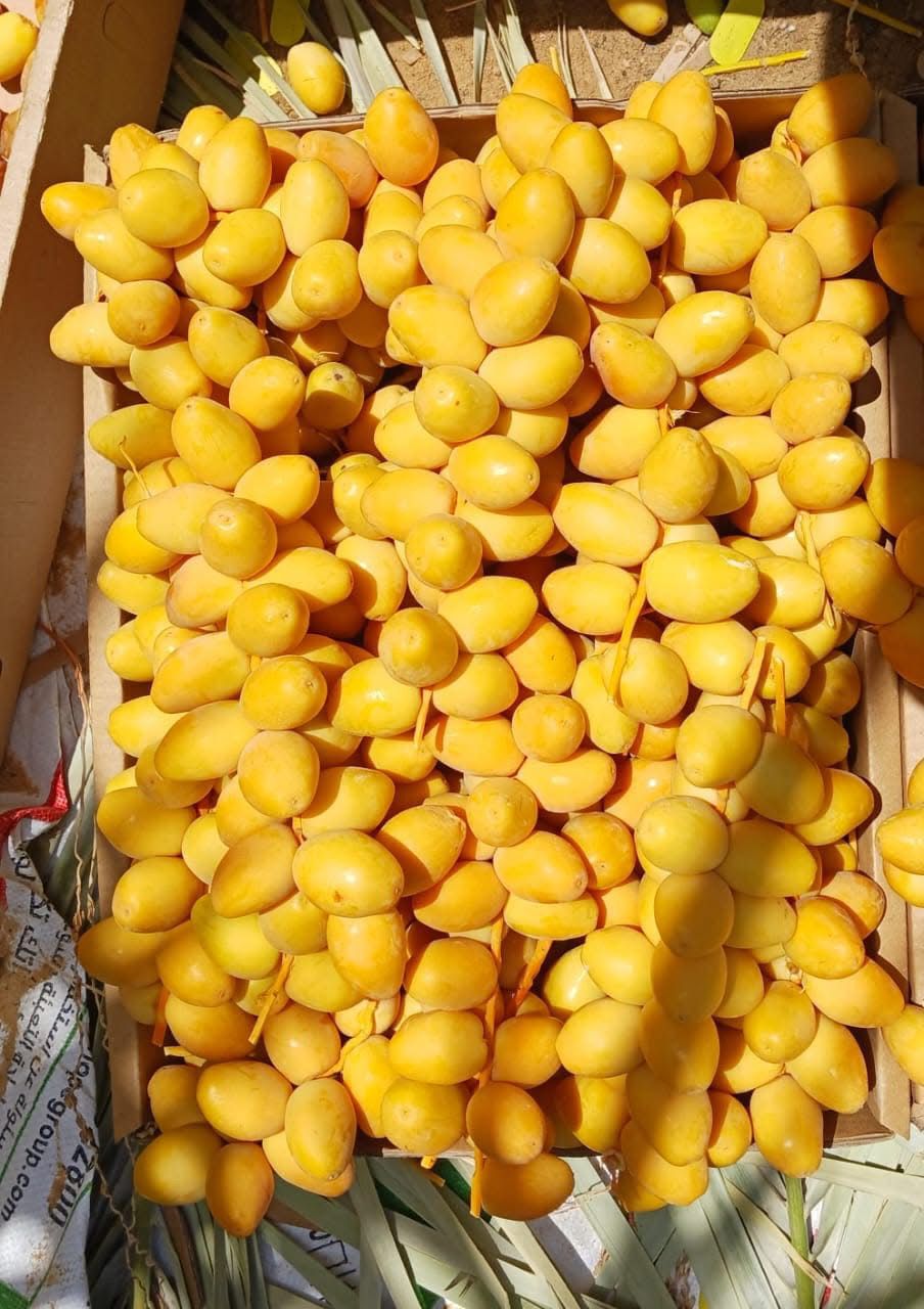 Prova en av Mellanösterns mest unika dadelsorter – Barhi. Dessa dadlar äts färska, när de fortfarande är gyllengula, krispiga och milt karamellsöta – en smakupplevelse som skiljer sig från vanliga torkade dadlar.