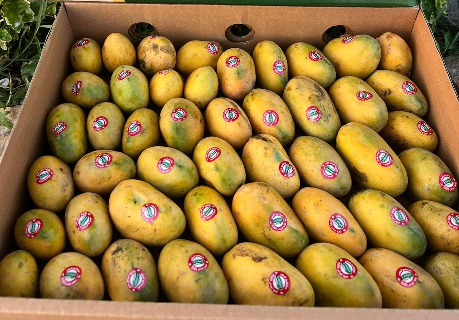 Varje kartong väger 2 kg och innehåller ett noggrant urval av färska, smakrika mangos.